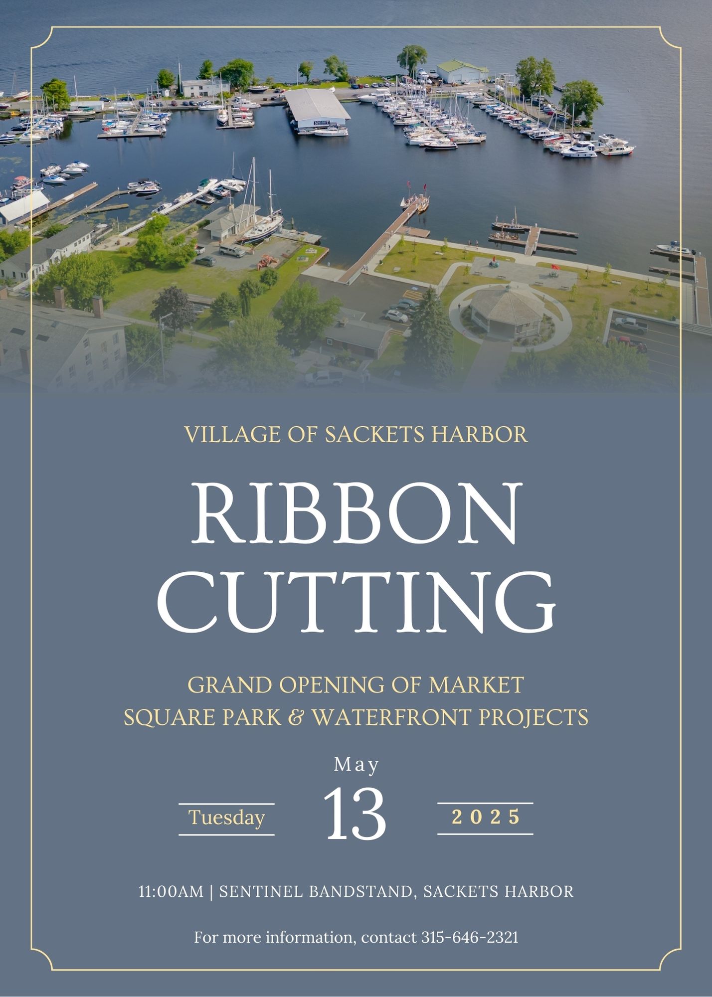 The Village of Sackets Harbor will hold a ribbon cutting ceremony for the official reopening of the Sentinel Bandstand, Market Square Park, and the village’s waterfront projects on Tuesday, May 13, at 11 am, at the Bandstand in downtown Sackets Harbor.